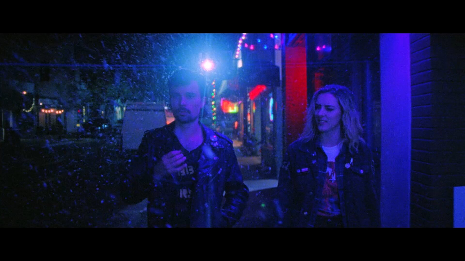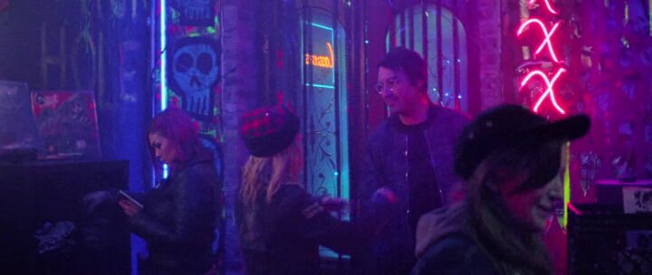 Кислотные цвета + Адская ночь + Снова замкнутое пространство (бар/полицейский участок), где герои пытаются держать оборону от Зла.